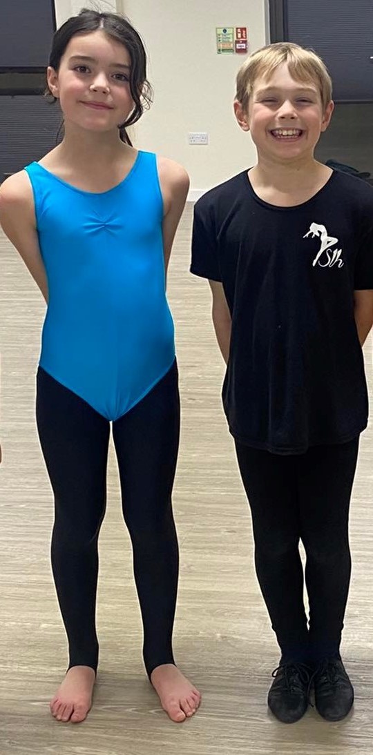 Boys– Plain white tight fitting t-shirt, white short sleeved leotard or SLH black t-shirt, black leggings, white socks and black ballet shoes with elastics.